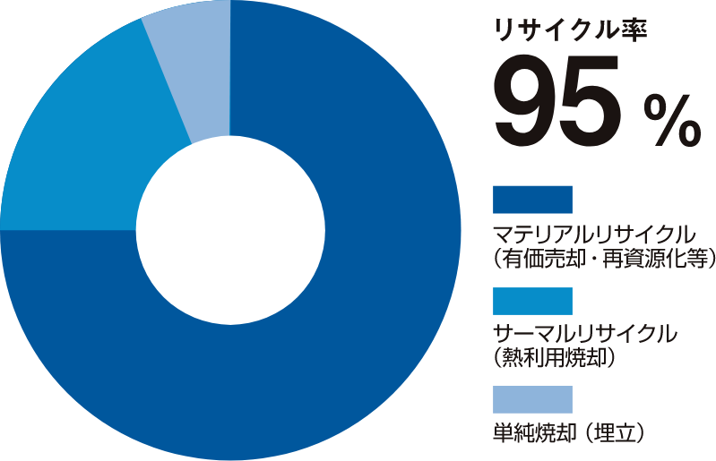 お客様から聞き取り、及び廃棄物置き場を確認させていただいて作成した診断書にもとづき、廃棄物の特性を生かしたリサイクル方法をご提案し、また廃棄方法や選別方法によりサーマルリサイクルよりもより価値のあるマテリアルリサイクルへのご提案や、コンプライアンスに沿った適正な処理をさせていただくことで、安心・安全な廃棄物の処理をお任せいただけます。